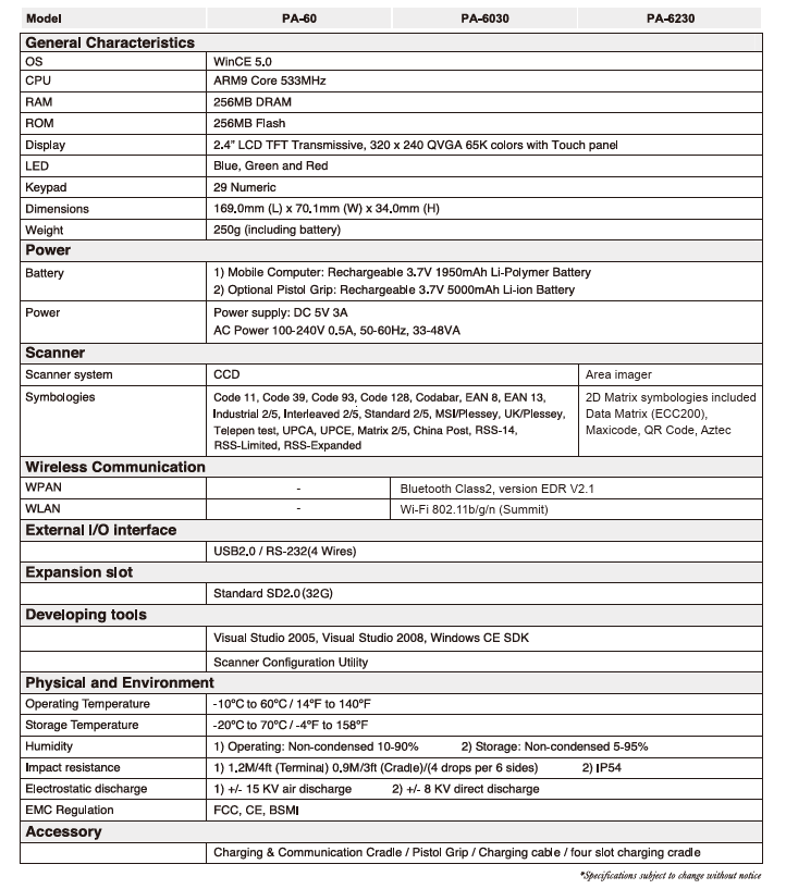 The Argox PA-60 is a high-performance industrial mobile computer designed to streamline data collection in demanding environments like warehouses, logistics centers, and retail back-offices. This specific configuration, featuring Windows CE 5.0 and an ergonomic handle, is built for high-intensity scanning tasks where comfort and durability are non-negotiable.