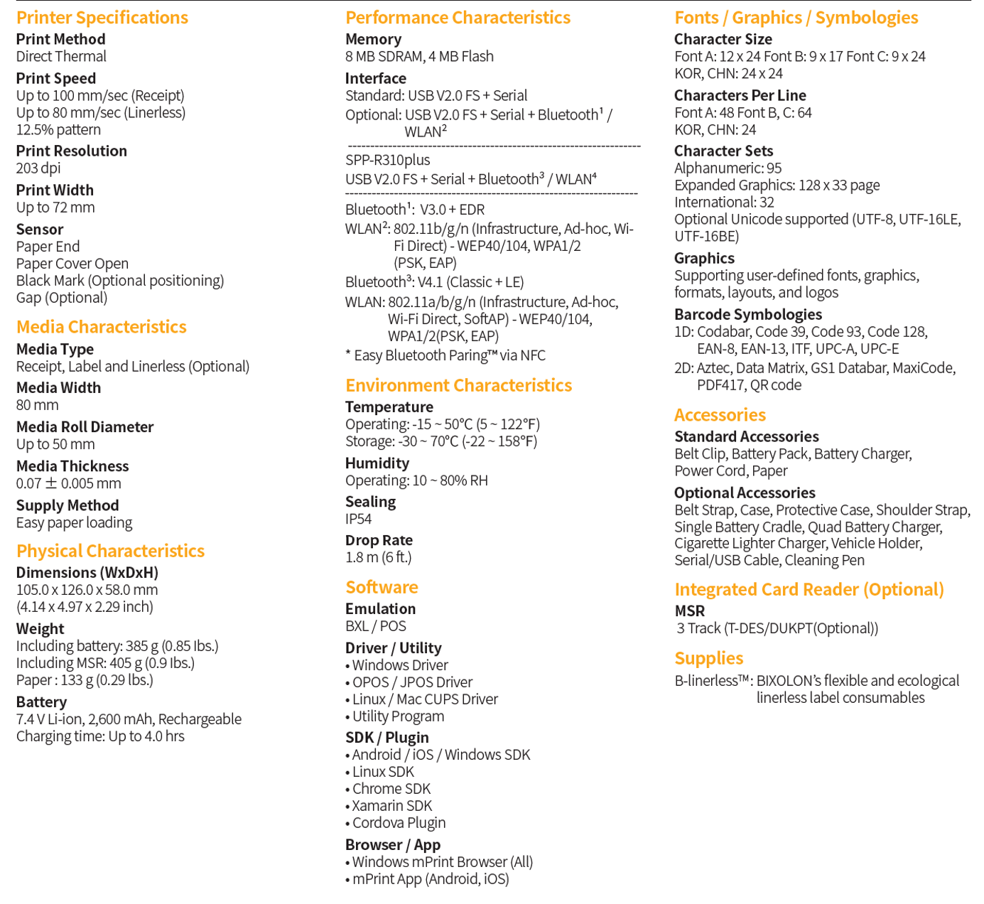 The Bixolon SPP-R310 is a professional 3-inch (80mm) mobile receipt and label printer known for its compact, lightweight design and high-speed performance. It is a preferred choice in Malaysia for field service, mobile point-of-sale (mPOS), and logistics due to its rugged reliability and seamless smartphone integration.