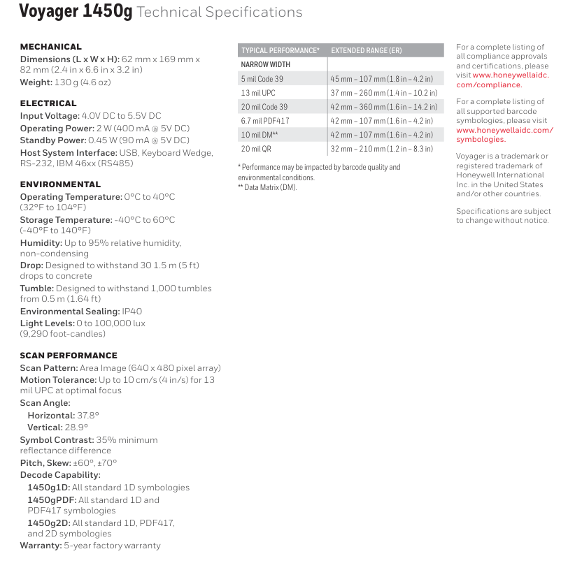 Honeywell Voyager 1450g