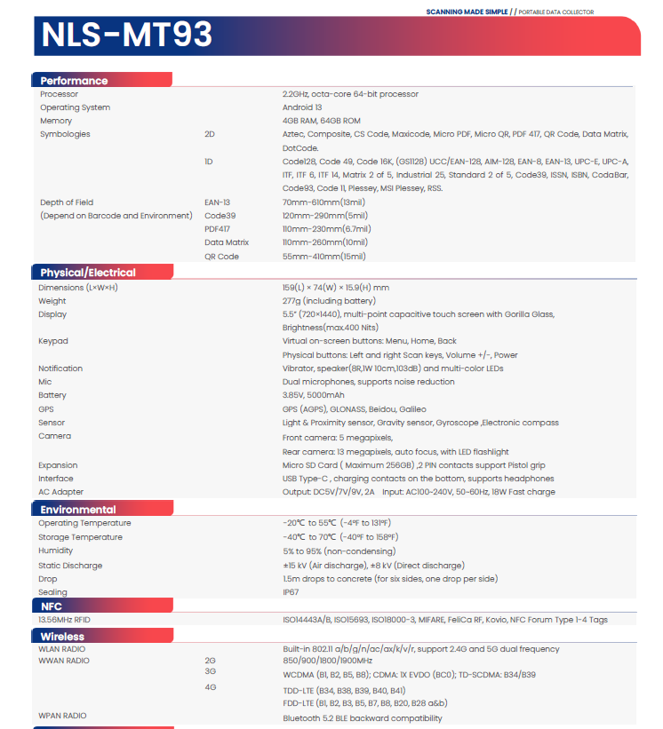 Newland NLS-MT93 Portable Data Collector (4G)