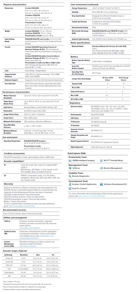 But with the DS2200 Series, you can scan it all. You get an affordable 1D/2D imager that doesn’t compromise performance or features for price. And you can choose the model that best fits your POS needs — the corded DS2208 or the cordless DS2278. The DS2200 Series — the affordability your budget demands, with the deployment, ease of use and management simplicity your business requires.