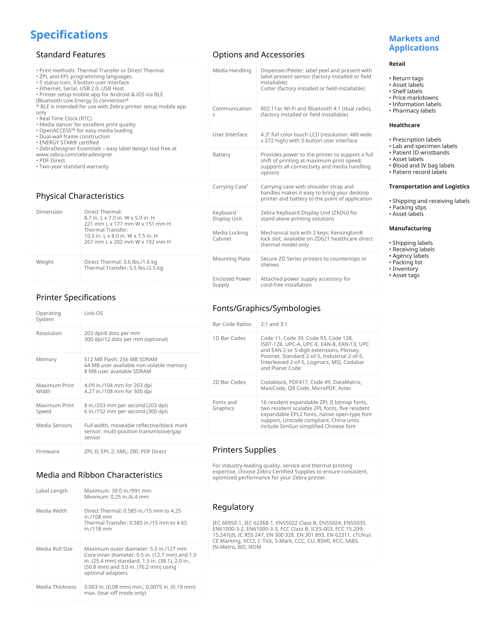 Zebra ZD621 4-inch Desktop Direct Thermal Transfer Printer