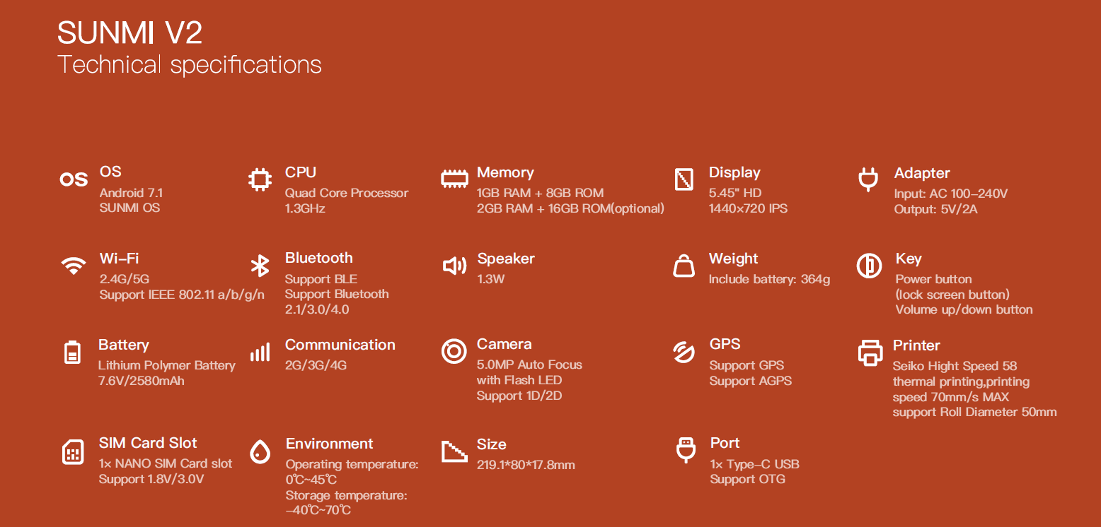 Sunmi V2 Handheld POS Terminal Category: POINT OF SALES (POS) SYSTEM PROVIDER Add to Enquiry List Brand Specification Brochure Brand Sunmi Specification BrochureSunmi V2 Handheld POS Terminal Brochure Related products Quick View Quick View POINT OF SALES (POS) SYSTEM PROVIDERSunmi V2 Pro Handheld POS Terminal Read more Quick View Quick View POINT OF SALES (POS) SYSTEM PROVIDERiMin Mobile POS M2-202 Read more Quick View Quick View BARCODE PRINTER, POINT OF SALES (POS) SYSTEM PROVIDER, POINT OF SALES HARDWARE & SOFTWAREEC Line EC-PM-C250 POS Thermal Receipt Printer Read more
